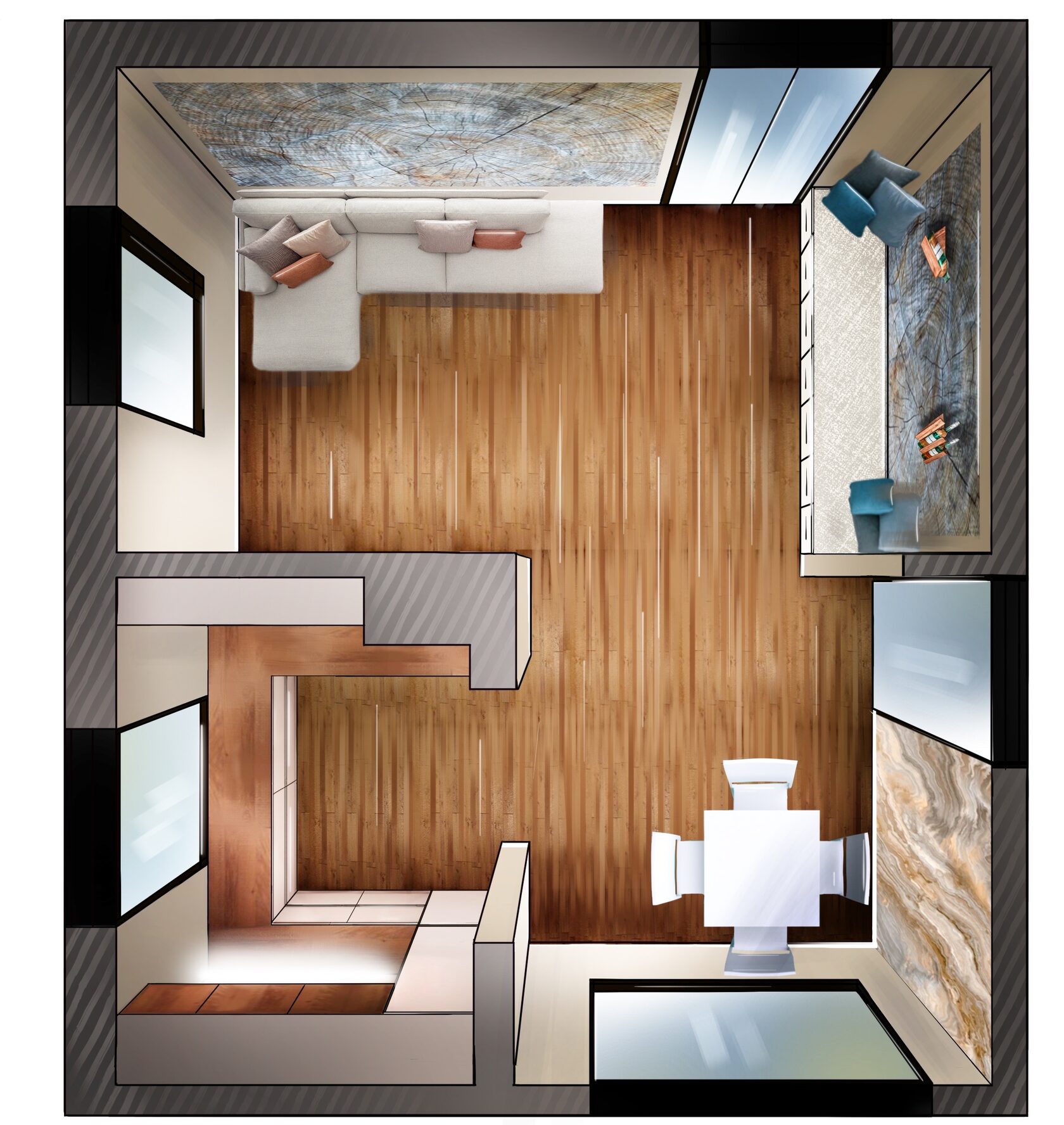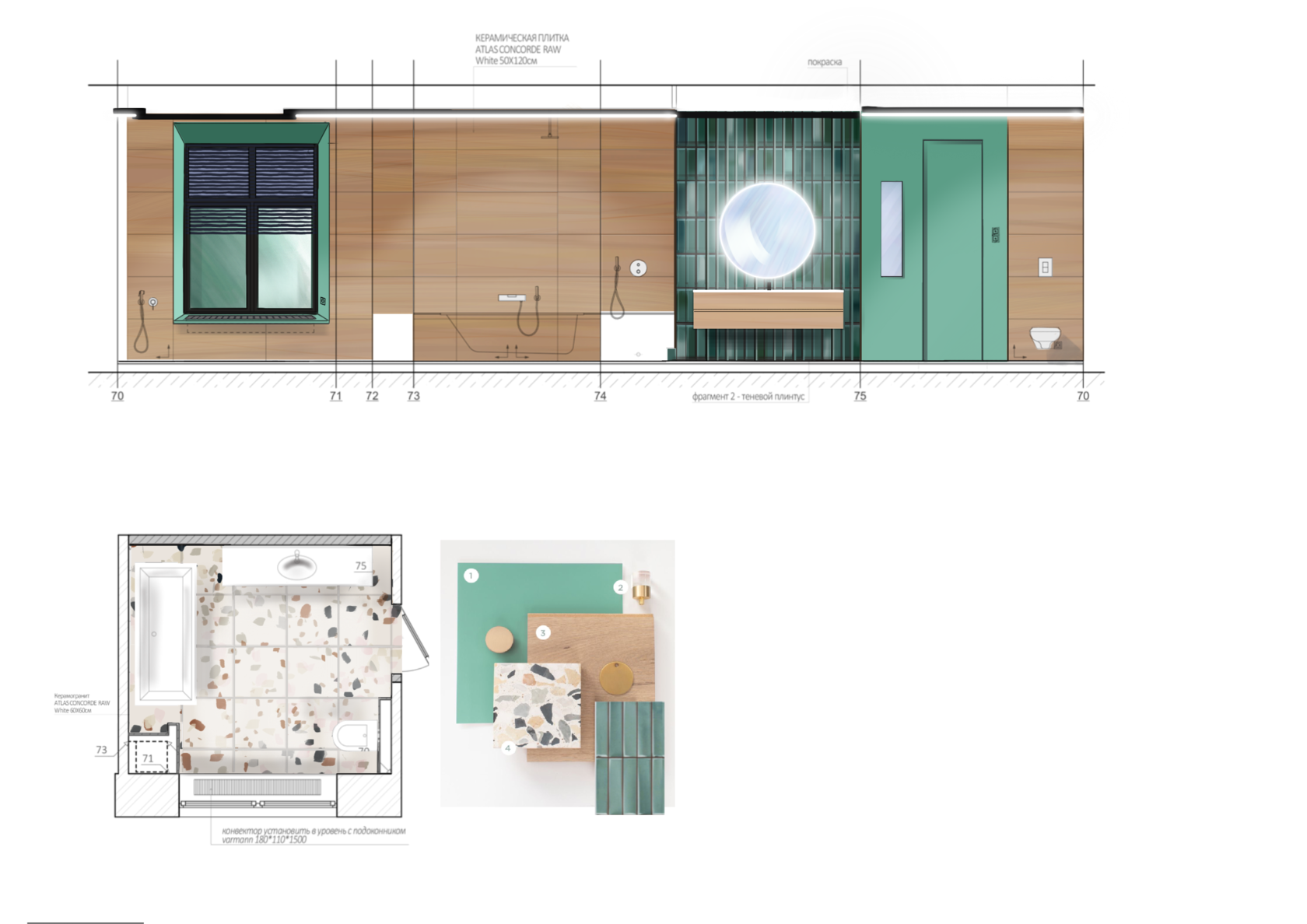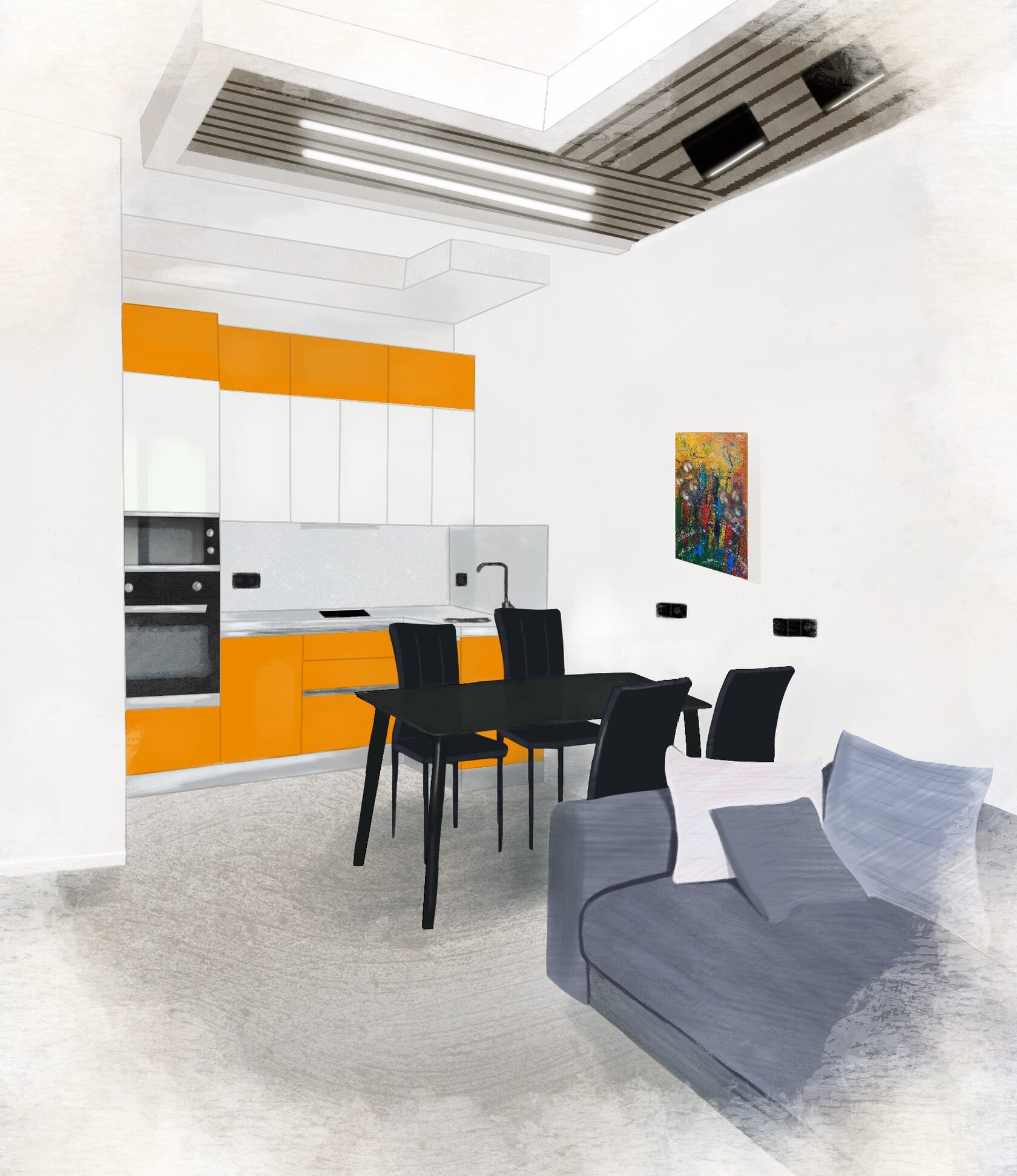 Минимализм с искусством, итальянская плитка Кандинский добавляет сочности и характер в светлой и уютной квартире.
