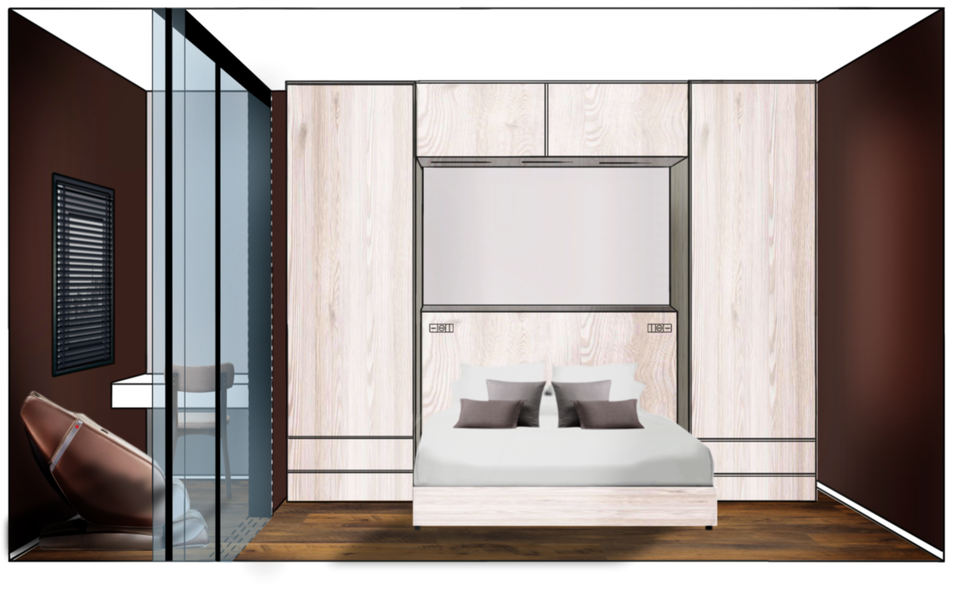 В спальне стоит кровать Икеа с ящиками под кроватью, шкафы занимают места, кровать 2 в 1 идеальный вариант для сохранения пространства.